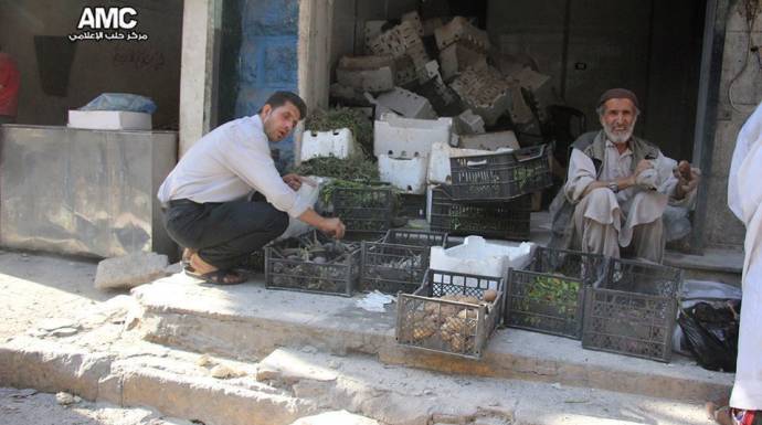 ويتحدث "أبو محمد " حول الوضع المعيشي السيء الذي يحياه 250 ألفاً من المدنيين في حلب، "بالنسبة للخضار يوجد عدة أنواع كالبانجان والبقدونس والفجل، أما بالنسبة للألبان يوجد الحليب واللبن بكميات قليلة، لحم الغنم قليل جداً، مع انعدام للبنزين والغاز وندرة مادة الكاز والمازوت".
