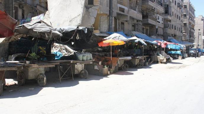 يعاني الشطر الشرقي من مدينة حلب من نقص كبير في المواد الغذائية، وفقدان شبه كامل للخضروات والفواكه، وبلغت الأسعار في الأسواق حداً يفوق إمكانية المواطنين، حيث تضاعفت أكثر من عشر مرات منذ وقوع الحصار عليها.