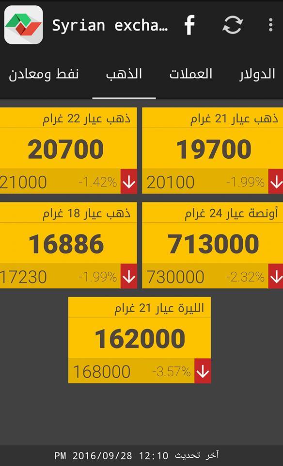 وفيما يلي أسعار أوزان الذهب حسب "سيرياستوكس"، ووفق "التسعيرة الرسمية":