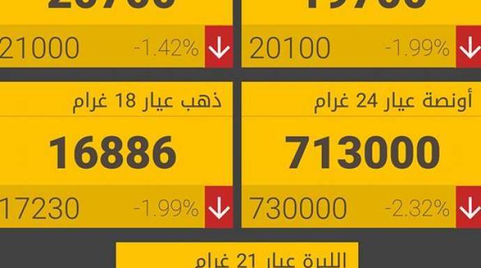 وأصبح غرام الـ 21 ذهب بـ 19700 ليرة، فيما أصبح غرام الـ 18 بـ 16886 ليرة.