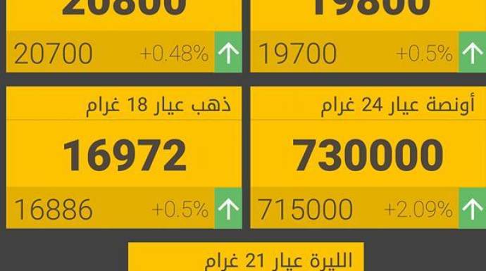 وبقي الذهب عند 19800 ليرة لغرام الـ 21،، و16972 ليرة لغرام الـ 18.