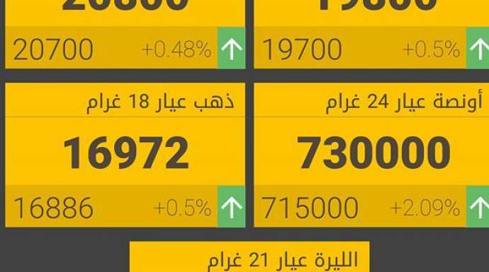 وبقي الذهب عند 19800 ليرة لغرام الـ 21،، و16972 ليرة لغرام الـ 18، وهي نفس أسعاره منذ يوم الخميس الماضي.