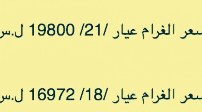 وبقي الذهب عند 19800 ليرة لغرام الـ 21،، و16972 ليرة لغرام الـ 18.