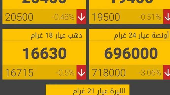 خسر غرام الـ 21 ذهب، اليوم الخميس، 100 ليرة جديدة.