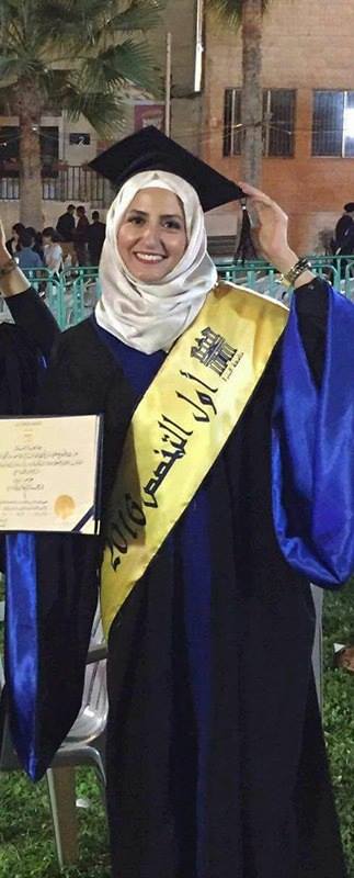 عُلا محمد شرّوف، تخرجت بدرجة امتياز والأولى على دفعة خريجي الفصل الصيفي 2016 من كلية التغذية والحميات السريرية من جامعة البترا