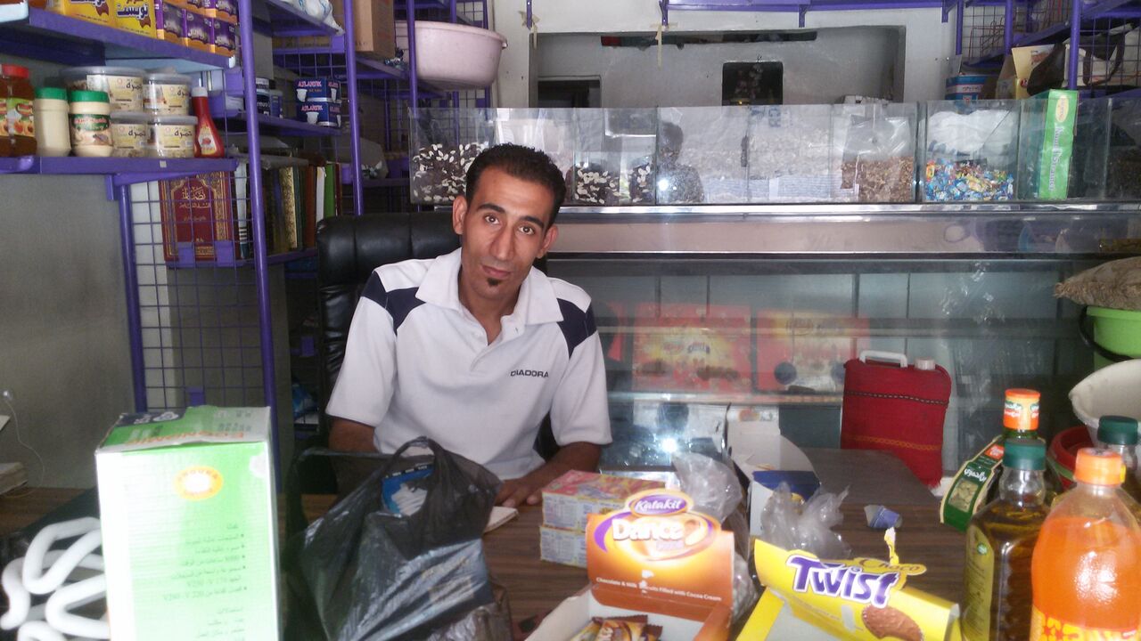يضيف أيضاً بينما يبيع قطة بسكوت لطفل صغير بـ 60 ليرة، متابعاً: "هذه القطعة تباع في العاصمة بـ 30 ليرة، بإمكانك القول إن جميع السلع تباع هنا بسعر مضاعف مرة أو مرتين عن سعر دمشق".