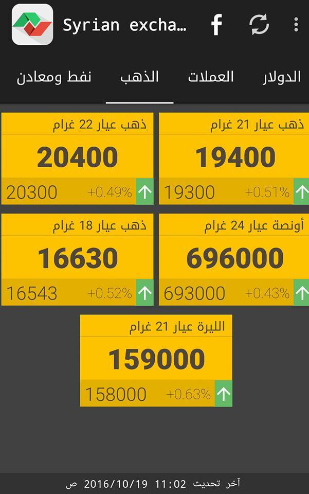 وفيما يلي أسعار أوزان الذهب حسب "سيرياستوكس"، وفق "التسعيرة الرسمية":