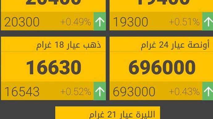 وبقي غرام الـ 21 ذهب بـ 19400 ليرة، وغرام الـ 18 بـ 16630 ليرة.