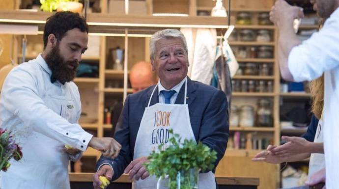 وكنوع من التشجيع المعنوي للمشروع وضمن سلسة النجاحات المتتالية للمجموعة حضر الرئيس الألماني "يواخيم غاوك" أحد فعالياته، "أراد رئيس الدولة أن يُظهر للعلن عبر الشاشات المرئية (التلفاز) نوع النشاطات التي تقدمها المجموعة فشاركنا نشاطاتنا وطلب مني أن يتعلم طريقة تحضير التبولة، كما تحدث قليلاً مع الفريق عن المشاكل التي واجهتهم ووعد بتذليل الصعوبات التي تعترض المشروع"، يقول مضر.