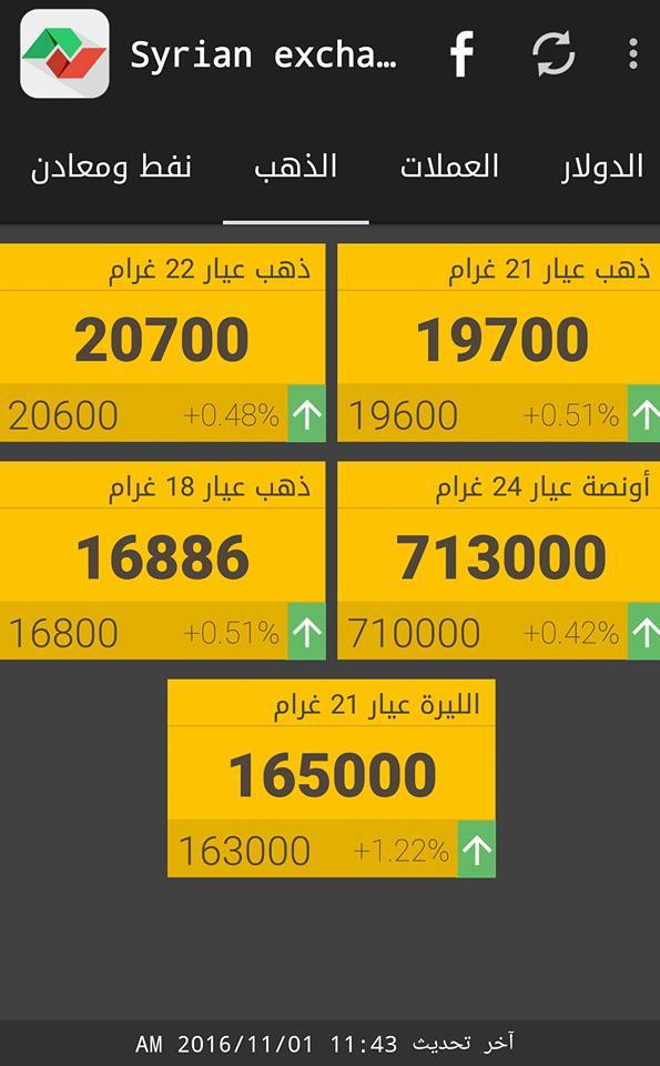 وفيما يلي أسعار أوزان الذهب، حسب "سيرياستوكس"، ووفق "التسعيرة الرسمية":