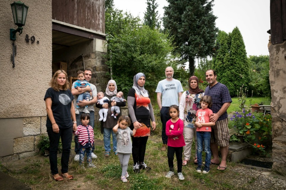 كان المتطوعان سارة بريندل وزوجها ستيفي ينتظران في باحة بيت ريفي كانا قد قاما بتجديده خصيصاً للعائلة. وقد أسس الاثنان معاً مشروع Refugeeum لدعم اللاجئين وتقديم الملاذ الآمن للوافدين الجدد. وتقوم مهمتهما على تسهيل الاندماج في المناطق الريفية في شرق ألمانيا، حيث ترأست الاحتجاجات المناهضة للاجئين والهجمات عناوين الصحف الدولية.