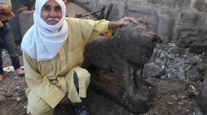 أبو عكرمة (75عاماً)، بنّاء ونحات حجر.. لم يدرس فنون النحت ولا التاريخ.. مؤهله العلمي سادس ابتدائي، تعلم أسرار النحت بالفطرة.. ولد بيده إزميل ومطرقة بدأ مهنته قبل (40 عاماً) تقريباً.. ولديه الكثير من الأعمال.. كان طموحه بناء قلعة من الحجر البازلتي الأسود، تضم جميع أعماله، إلا أن أولاده لم يساعدوه في تحقيق حلم حياته..