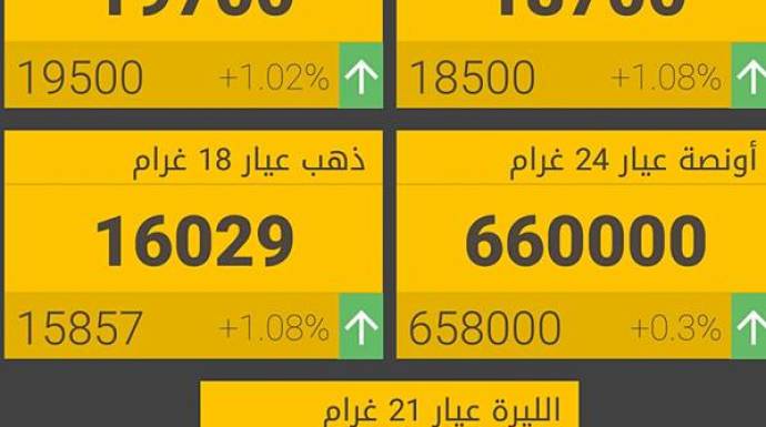وحسب الجمعية، أصبح غرام الـ 21 ذهب بـ 18600 ليرة شراء، 18700 ليرة مبيع.