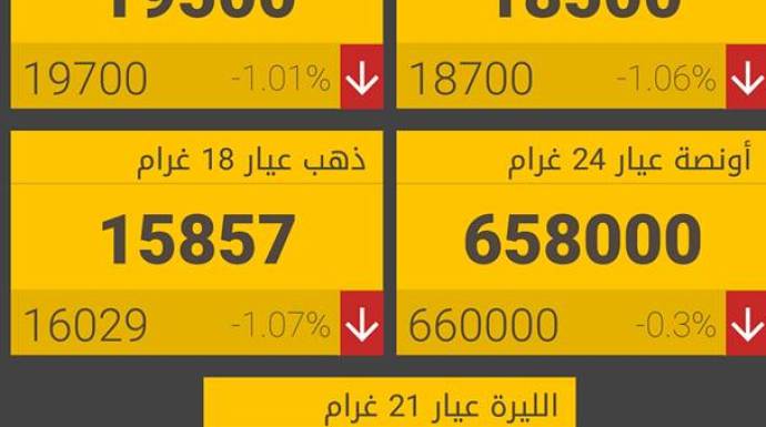 كما بقي غرام الـ 18 بـ 15757 ليرة شراء، 15857 ليرة مبيع.