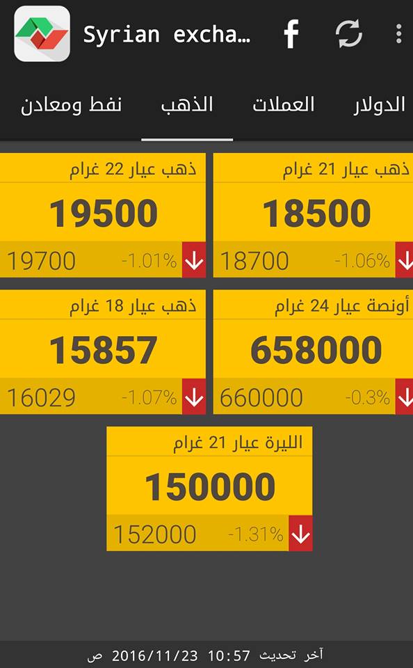 وفيما يلي أسعار أوزان الذهب حسب "سيرياستوكس"، وفق "التسعيرة الرسمية":
