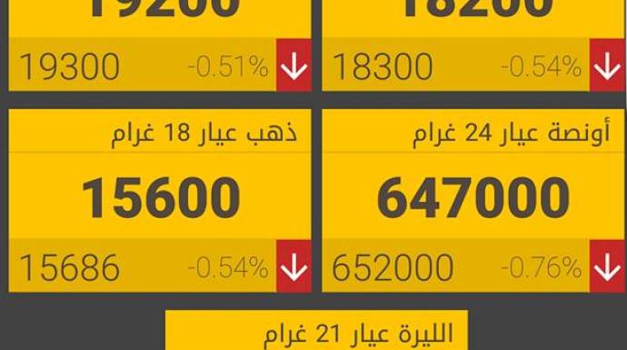 وأصبح غرام الـ 21 ذهب بـ 18100 ليرة شراء، 18200 ليرة مبيع.