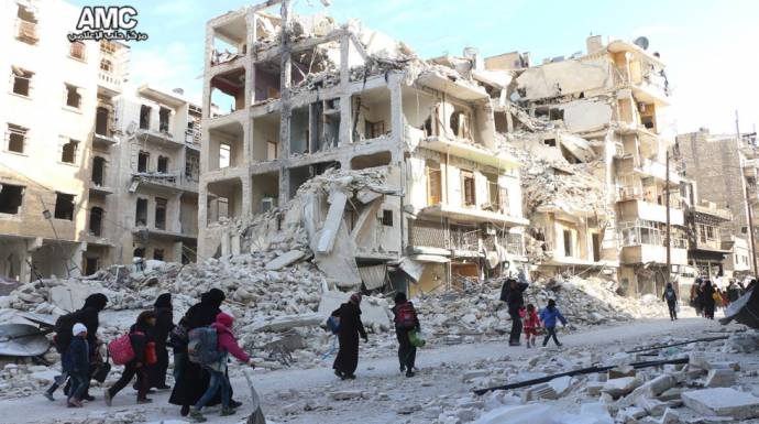 وتتعرض أحياء حلب الشرقية، منذ أسبوعين، لقصف عنيف من طائرات النظام وطائرات روسية أسفر عن سقوط مئات القتلى والجرحى من المدنيين، فيما تقدمت قوات النظام والميليشيات الموالية لها على الأرض، وسيطرت على ثلث المناطق الخاضعة للمعارضة في المدينة.
