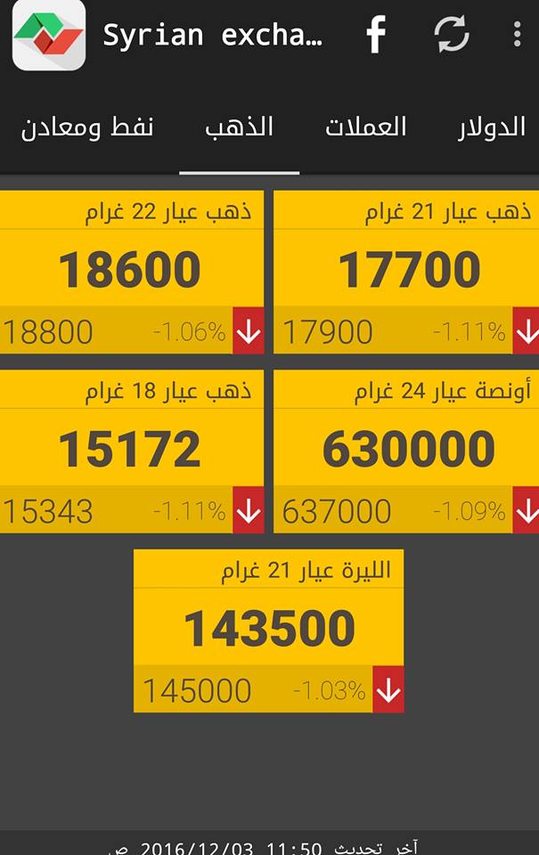 وفيما يلي أسعار أوزان الذهب حسب "سيرياستوكس"، وفق "التسعيرة الرسمية":