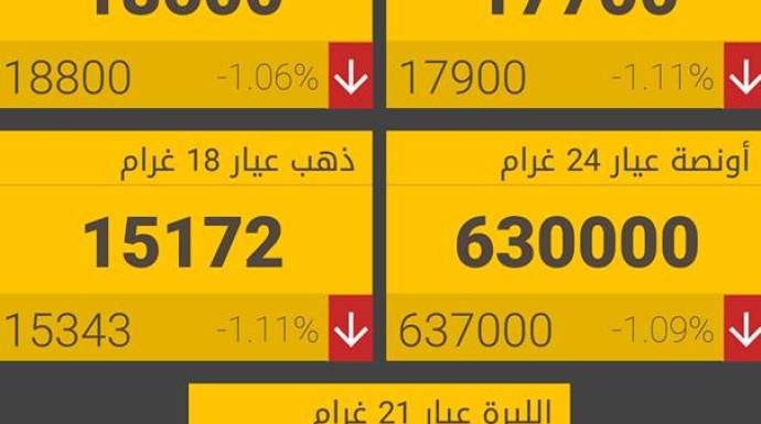 فيما أصبح غرام الـ 18 بـ 15072 ليرة شراء، 15172 ليرة مبيع.