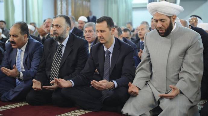 اعتاد حافظ الأسد على الدعوة لصلاة استسقاء سنوية، كان يوجه بإقامتها عند التأكد من قدوم منخفض جوي ماطر، وما تكاد الصلاة التي يلتزم بإقامتها مشايخ السلطة تنتهي حتى يبدأ هطول المطر، وهذا من الأسباب التي دفعت بسطاء الموالين للاقتناع بحكمة قائدهم "المفدى" واقترابه من صفة الألوهية، وهو الأمر الذي دعوا إليه في مسيراتهم مرات عديدة بهتافهم المعروف "حلّك يا الله حلّك يقعد حافظ محلّك".