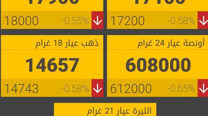 فيما أصبح غرام الـ 18 بـ 14557 ليرة شراء، 14657 ليرة مبيع.