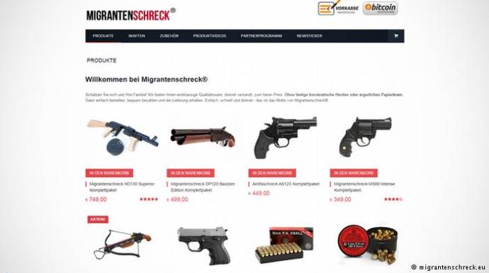 كنت أظنها في البداية نكتة سخيفة. موقع "رعب المهاجرين" الناطق باللغة الألمانية. صفحة لم تثر الانتباه بسبب عنصريتها ضد اللاجئين فقط، بل من خلال عرضها للبيع أسلحة تستعمل ضد اللاجئين.