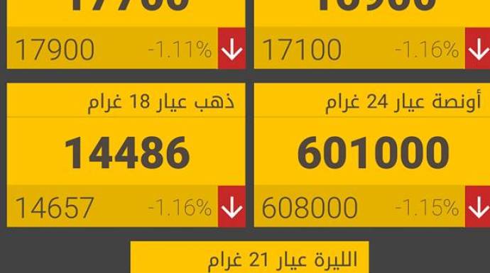 كما بقي غرام الـ 18 بـ 14386 ليرة شراء، 14486 ليرة مبيع.