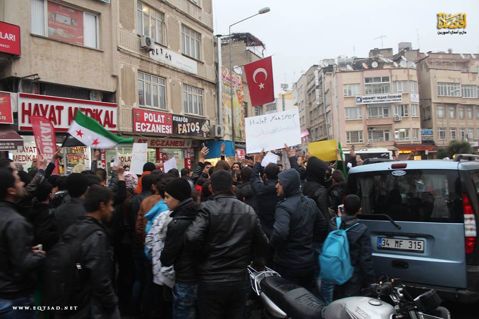 عقب أداء الصلاة خرجت المظاهرة عن حرم ساحة الاستقلال، لتجوب شوارع مدينة كيليس، لكن تدخل رجال الأمن الأتراك أعاد الأمور إلى ما كانت عليها.