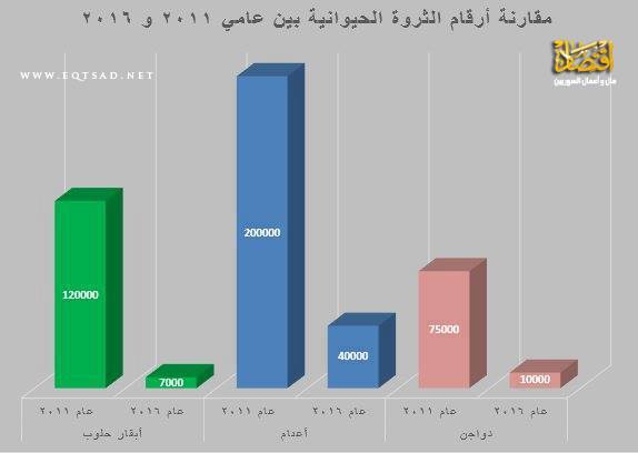 أما اليوم وحسب إحصاءاتنا في نقابة الأطباء البيطريين فإن الأعداد تناقصت بشكل مخيف جداً 7000 رأس بقر حلوب ، 40000 رأس غنم ، 10000 فرخة بياضة.