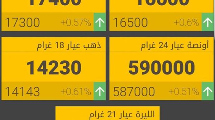 فيما أصبح غرام الـ 18 بـ 14130 ليرة شراء، 14230 ليرة مبيع.