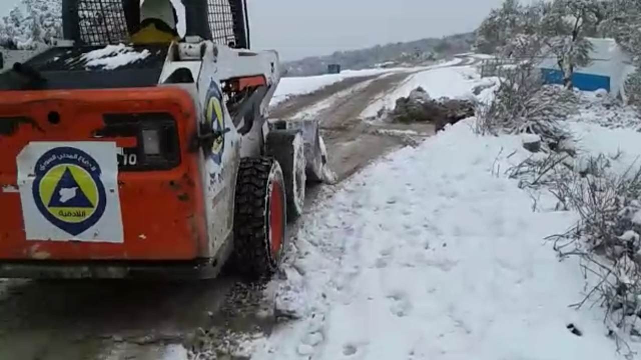 وتحاول عناصر الدفاع المدني فتح الطرقات بين القرى والبلدات باستخدام الأدوات البسيطة المتوفرة وخصوصاً طرق المخيمات.
