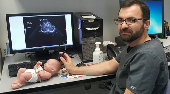 بهذه الطريقة يستطيع المتدرب أن يعايش تجربة مشابهة جداً للتي سيعايشها عند فحص المريض، وهذا الجهاز سيستخدم صور مطابقة للواقع ولما يكون في رأس الطفل.
