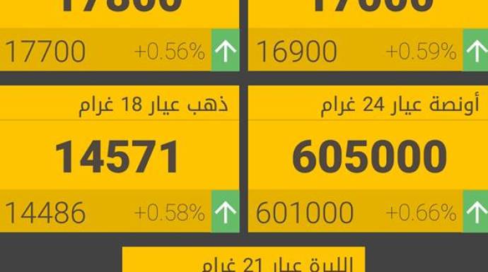 وبقي غرام الـ 21 بـ 16900 ليرة شراء، 17000 ليرة مبيع.
