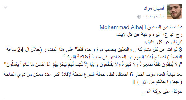 "تحدي الأعمال الصالحة".. أسلوب جديد بيتكره السوريون لجمع التبرعات عبر "فيسبوك"