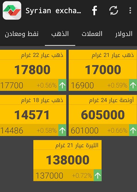 وفيما يلي أسعار أوزان الذهب حسب "سيرياستوكس"، وفق "التسعيرة الرسمية":