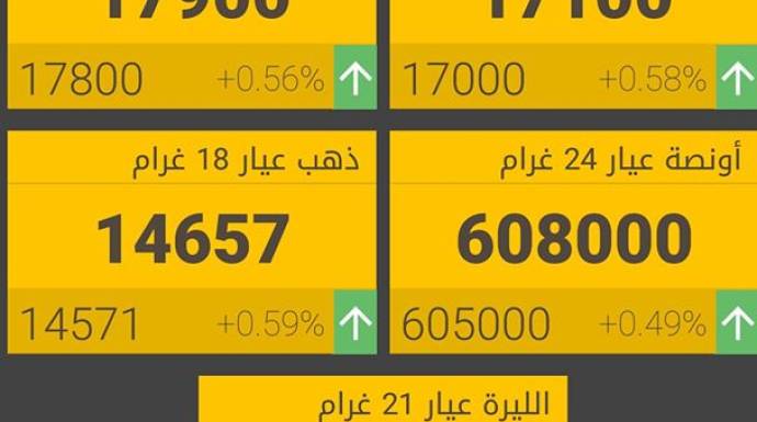 وبقي غرام الـ 21 بـ 17000 ليرة شراء، 17100 ليرة مبيع.