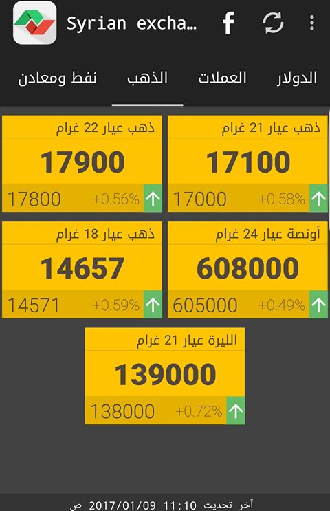 وبقي غرام الـ 21 بـ 17000 ليرة شراء، 17100 ليرة مبيع.