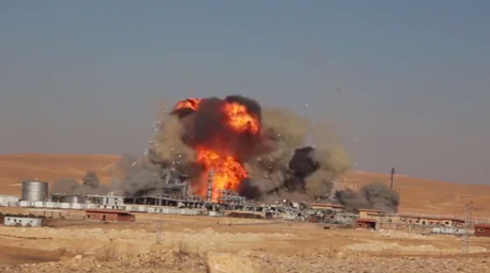 وكان "تنظيم الدولة" أعلن أمس أنه دمر شركة حيان للغاز شرق حمص بشكل كامل بتفجير عدد كبير من العبوات الناسفة داخلها.