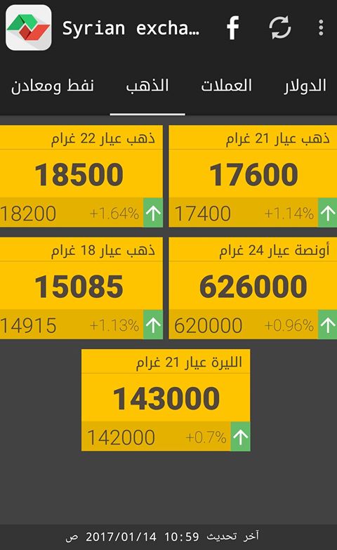 وفيما يلي أسعار أوزان الذهب حسب "سيرياستوكس"، وفق "التسعيرة الرسمية":