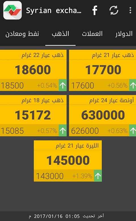 واعتمدت جمعية الصاغة بدمشق، سعر 1208 دولار، كسعر للأونصة.