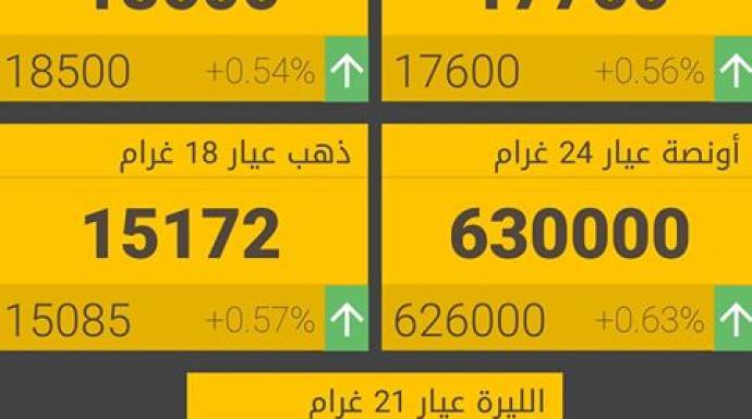 وأصبح غرام الـ 21 ذهب، بـ 17600 ليرة شراء، 17700 ليرة مبيع.
