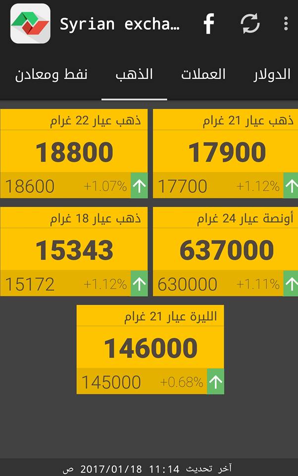 واعتمدت جمعية الصاغة بدمشق، سعر 1214 دولار، كسعر للأونصة.