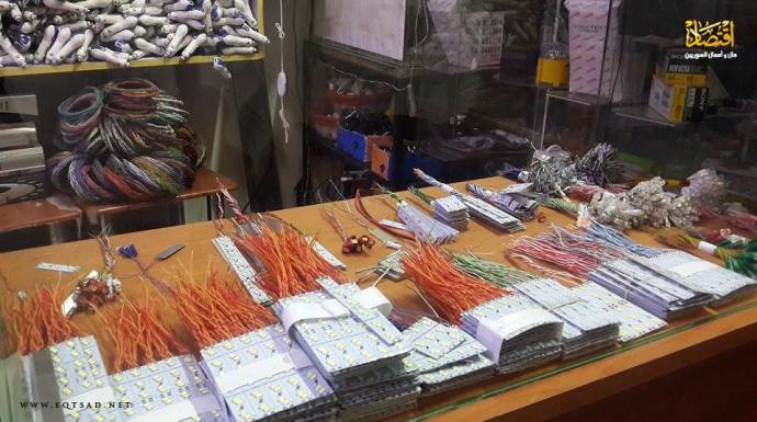 وتابع "راتب": "قبل خمس سنوات كنا نرى إقبالاً نادراً على ألواح الطاقة الشمسية والبطاريات 12 فولط والليدات الخاصة بالإنارة، أما اليوم رأينا إقبالاً شديداً على هذه المواد، فضلاً عن إمكانية تصنيعها من قبل مهندسين أو شباب ذوي خبرة، ففي صيف عام 2016 استطعنا في هذا المحل الصغير تصنيع مراوح كهربائية تعمل بطاقة 12 فولط حيث شهدت إقبالاً كثيفاً بسبب بساطة تصنيعها وإنخفاض سعرها، حيث وصل سعر المروحة الواحدة آنذاك إلى حوالي 2000 ليرة سورية كحد أقصى".