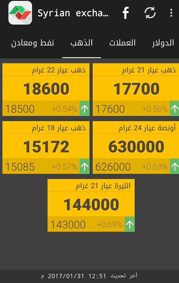 ارتفع غرام الـ 21 ذهب، في دمشق، 100 ليرة، اليوم الثلاثاء.