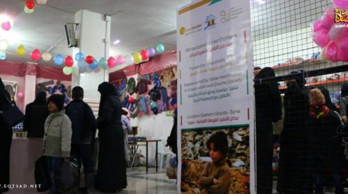 شهدت مدينة دوما افتتاح أول سنتر خيري يقوم بتقديم الألبسة الشتوية بشكل مجاني للأطفال، حيث تم عرض الكثير من قطع الألبسة والمستلزمات الشتوية والأحذية ضمن صالة عرض كبيرة تتوفر فيها مختلف الأنواع والمقاسات، والتي تم تصنيعها بشكل محلي من أجل المساهمة في انتشار المنتوجات المحلية.
