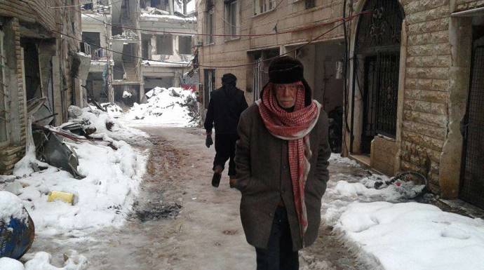 أخذ السوريون الذين يعيشون في المدن المحاصرة يزيلون أبواب منازلهم وشبابيكها وأخشاب اخرى لحرقها بغية الحصول على بعض الدفء في الليالي الباردة بعد دخولهم في فصل شتاء آخر وهم محاصرون في الصراع الدائر في البلاد.