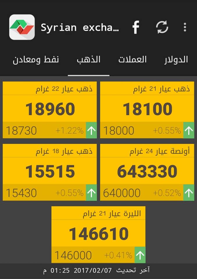 وأصبح غرام الـ 21 ذهب، بـ 18000 ليرة شراء، 18100 ليرة مبيع.