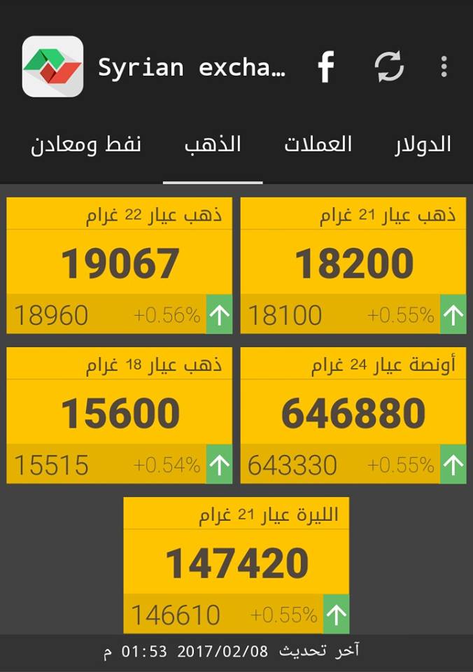 وأصبح غرام الـ 21 ذهب، بـ 18100 ليرة شراء، 18200 ليرة مبيع.