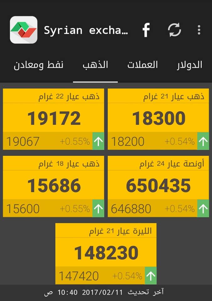 وبقي غرام الـ 21 ذهب، بـ 18200 ليرة شراء، 18300 ليرة مبيع.