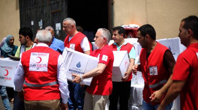 افتتحت منظمة الهلال الأحمر التركي، اليوم الاثنين، في مدينة إدلب السورية، ثلاثة نقاط لتوزيع المساعدات، أطلق عليها اسم "متاجر المحبة".